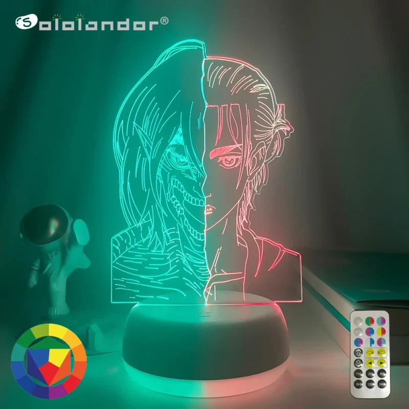 مصباح LED بتصميم أنيمي: إيرين تيتان، هدية ثنائية اللون لغرف النوم