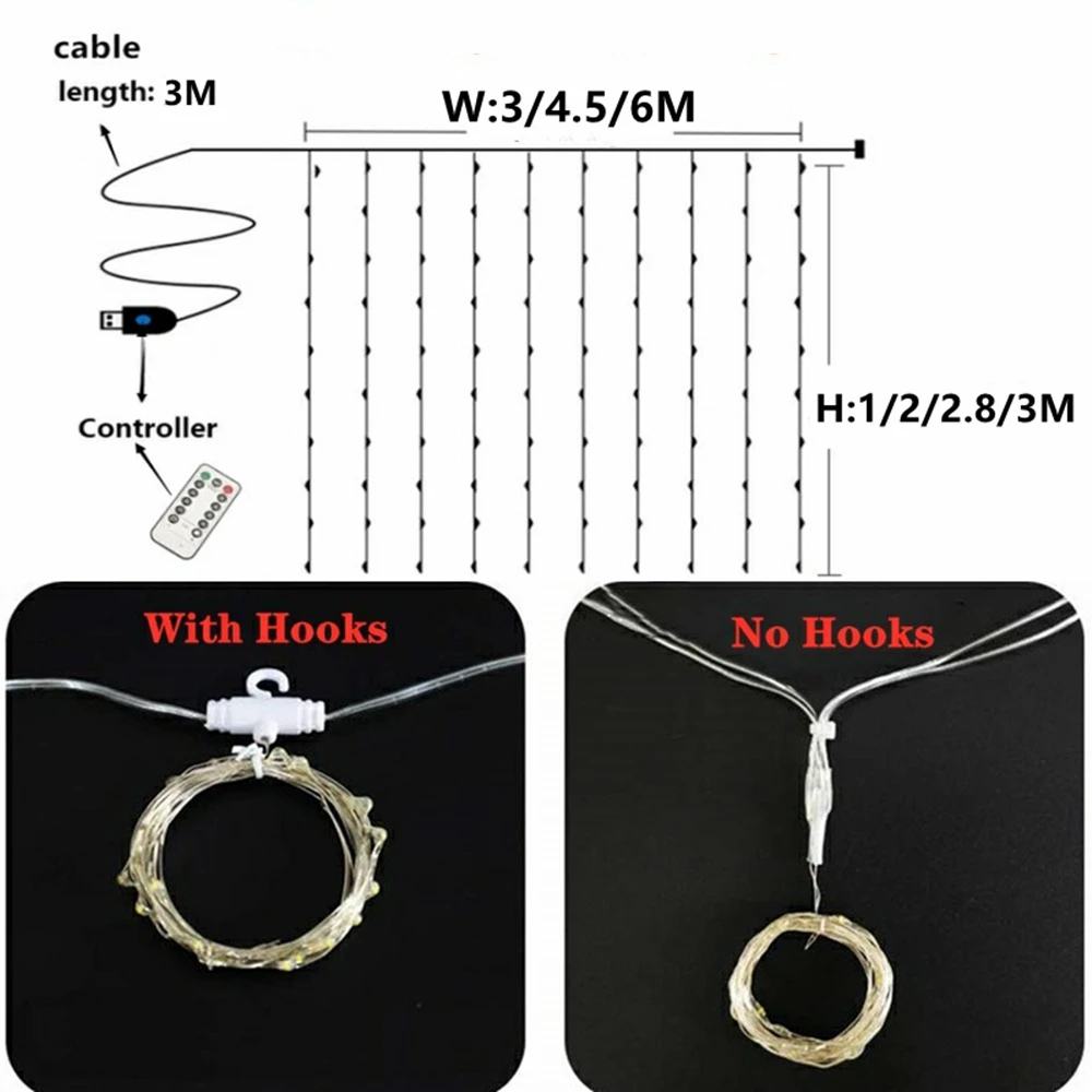 الحجم: العرض: 3m/9.84Ft * الارتفاع: 2.8M/9.18Ft مع 280 LEDs (مع 10 خطاف)