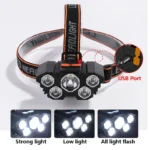 • 5 مصابيح ليد :يتميز المصباح الأمامي بـ 5 مصابيح LED توفر شعاعًا قويًا ومشرقًا ، مما يجعله مثاليًا للأنشطة الخارجية مثل التخييم وصيد الأسماك.